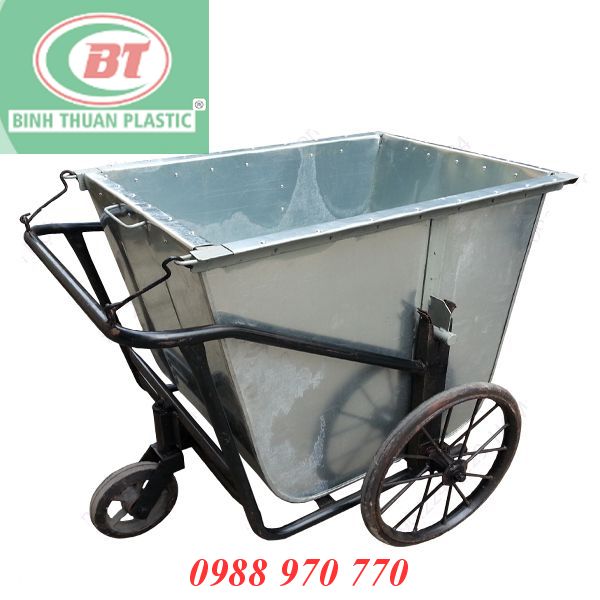 Mô tả: Xe gom rác 500L. Kích thước: 1060 x 800 x 840 mm. Khung xe gom được làm bằng ống tuýp Ф34, sơn chống gỉ sau đó phủ bởi một lớp sơn đen bóng